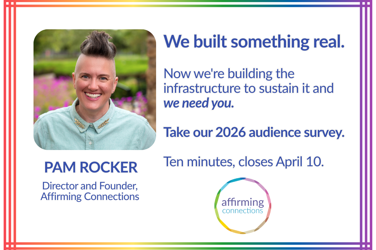 Affirming Connections strengthens and amplifies the voices & actions of fully inclusive faith communities and individuals. With expertise in the complex intersections of queerness and faith, we offer educational programming, advocacy, leadership support, and theological resources to meet the unique needs of the communities we serve.